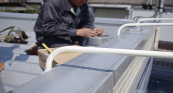 現地調査→見積り提出 まずはお伺いしいつもの様に打ち合わせを現場の状況を確認、ご希望等ヒアリングを行い、看板のサイズや仕様を決定。建屋上部の看板はシンプルなものにしたいという事でしたので、事業内容などをウィンドウサインと側面サインに集約するご提案をさせて頂きました。 |