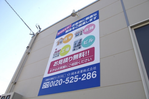 あま市で解体業を経営されている「岡本産業株式会社」様より、事業拡大で中川区に移転されるという事で看板のデザイン・施工を弊社webサイトを見てご相談いただきました。