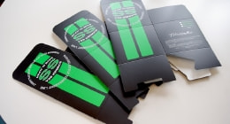 単なるデザイン確認用の試作品といってしまえばそれまでですが、念のため光沢のあるラミネート加工を施したり、マットラミネートを施したりと出来る限りあらゆるケースを想定しサンプルに反映させてみて感じを確認します。色々試すことにより時には思わぬ発見があったりします。