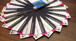当社では一般的な名刺用紙はもちろん、一風変わった質感や、手触りの特殊用紙も多種多様にお選び頂けます。また印刷の際に色の着いた部分だけを盛り上げたり型押しや箔押しエンボスなどという様々な特殊加工も承ります。インパクトのあるショップカードや名刺は印象に残ります。