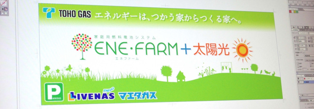 もともとお客様の以前から取引のある看板業者にデザインから依頼したところ、思ったようなデザインが出来上がって来ないという事で弊社にご相談をいただいた例です。●商品の写真などを一切使用しないでイメージだけで表現したい。●内容についてはすべてお任せ。・・・というなかなか抽象的かつ難易度の高いご希望でしたがとても楽しくやりがいのあるお仕事となりました。