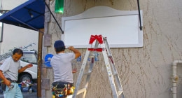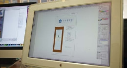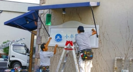 デザインを実際の建物の画像に重ね合わせプレゼン用の合成画像を制作します。これを行う事でオーナーさんがデザインを視覚的に確認しやすいだけでなく取り付け位置や大きさ、色選び等の失敗を避ける事が出来ます。完成した合成イメージと同時進行で作成した見積書を手に再びオーナーさんのもとへ伺います。