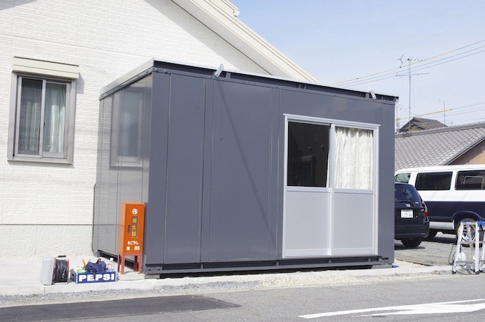 設営当日。予め仕込んできた木枠など会場にどんどん運び込み設営開始。