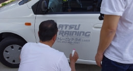 第三章 カッティングシート施行 今回はたまたまお客様の方でカッティングシートの施工経験があるという事でしたのでお客様自身でのセルフ施工となりました。これにより施工費のコストダウンになります。このように弊社でカッティングシートを貼るだけの状態で用意しお渡しする事も可能です。ただし失敗すると痛いのでご注意! |