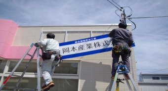あま市で解体業を経営されている「岡本産業株式会社」様より、事業拡大で中川区に移転されるという事で看板のデザイン・施工を弊社webサイトを見てご相談いただきました。