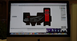 チラシやパンフレットと異なり、今回の相手は立体物であるパッケージ。実際に組んでみて確認してみなければイメージが伝わりづらかったり、デザイン上のミスに気づかないことも多いので社内で試作にとりかかります。