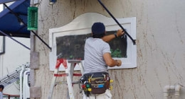 デザインを実際の建物の画像に重ね合わせプレゼン用の合成画像を制作します。これを行う事でオーナーさんがデザインを視覚的に確認しやすいだけでなく取り付け位置や大きさ、色選び等の失敗を避ける事が出来ます。完成した合成イメージと同時進行で作成した見積書を手に再びオーナーさんのもとへ伺います。